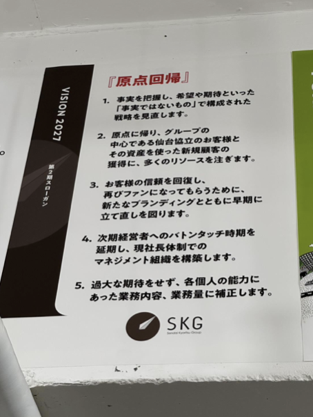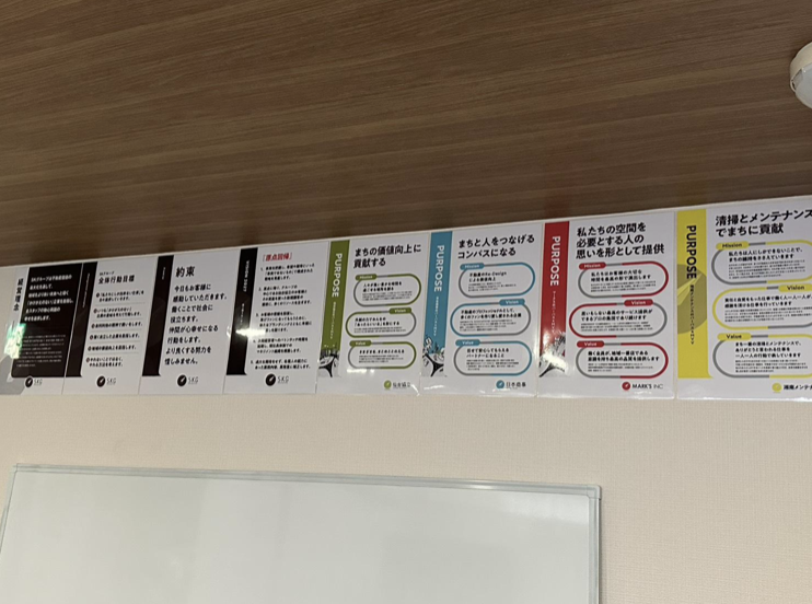 実はこのスローガンだけでなく、経営理念をはじめ、グループ各社の各種取り決めも社内に掲示しています。
