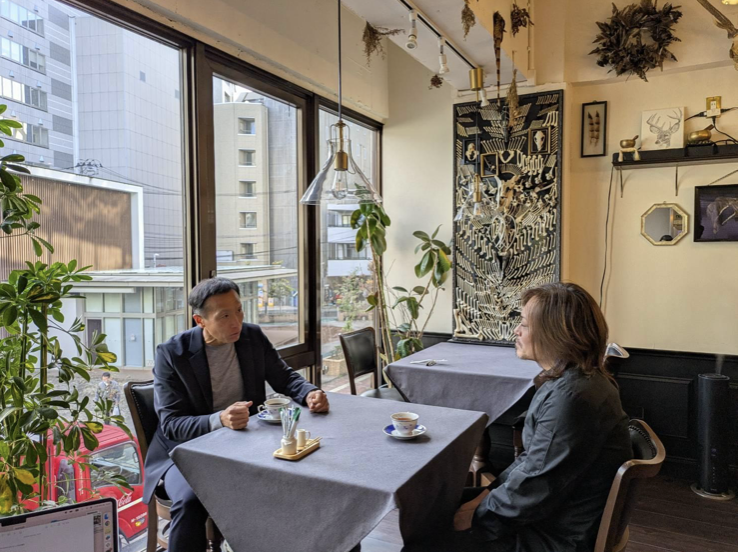 本町にある仙台協立第17ビル「NOTE」2階にご入居いただいている「bistro legalite」様にて、ビルオーナー様によるインタビューの場が設けられました。写真からも伝わるように、落ち着いた空間の中で交わされる対話は、単なる取材にとどまらず、互いの想いや価値観を共有する大切な時間となりました。