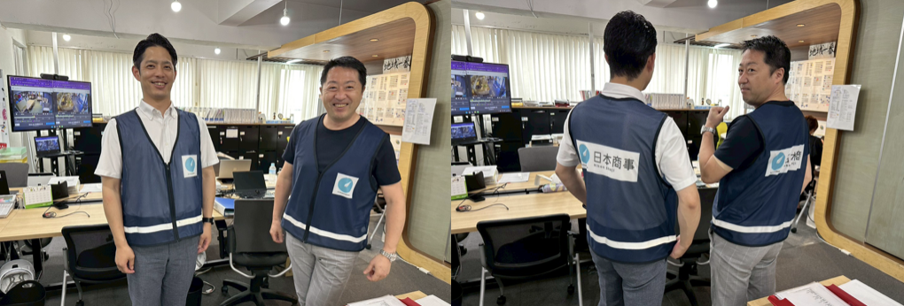 このビブスは、緊急対応や定禅寺クリーンアップなどの公式行事だけでなく、日常業務でも活用予定。屋外での作業や人が多い場面でも、「日本商事スタッフ」として分かりやすく見えることで、より安心・信頼につながればと思います。